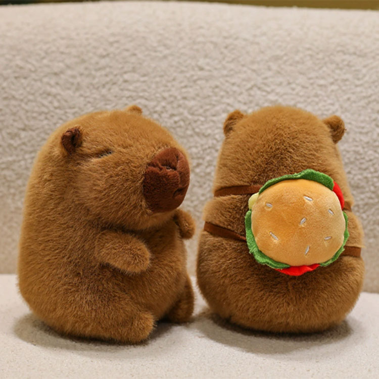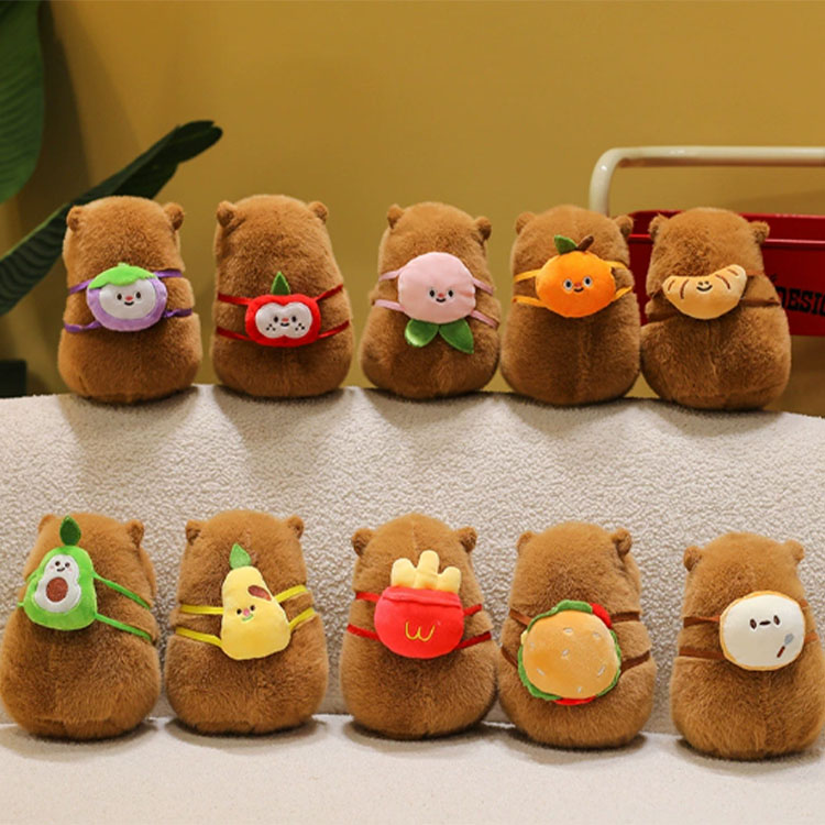 Diese süße Capybara Plüschpuppe hat ein Capybara -Erscheinungsbild. Alle Charaktere in dieser Serie sind mit einem Rucksack geformt, und jede Capybara trägt einen anderen Rucksack. Einige Capybaras tragen Hamburger auf dem Rücken, einige tragen Auberginen, einige tragen Äpfel, einige tragen französische Pommes und es gibt auch Birnen und Orangen. Es gibt alle Arten von Capybaras, und jeder ist sehr süß. Ihre Rucksäcke können abgenommen werden und es gibt insgesamt 10 verschiedene Stile. Und jeder kleine Rucksack ist sehr exquisit.