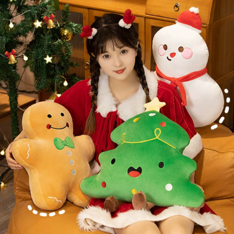 Dieses Plüschtier ist im Weihnachtsstil gehalten. Die Stile erfreuen sich großer Beliebtheit, darunter Lebkuchen-Plüschtiere, kleine Schneemänner und Weihnachtsbäume. Ihre Stoffe sind alle aus Plüsch und innen mit PP-Baumwolle gefüllt. Sie sehen nicht nur gut aus und eignen sich zur Raumdekoration, sondern können auch als Dekokissen und Kissen verwendet werden, was sehr praktisch ist.